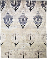 The combination of 21 individual colors of wool, silk and hemp yarns, in a one pile height, showcase an ancient city skyline now lit with new marvels of architecture. The distinct vintage technique gives the design an antique impression with a modern appearance. The BAKU RUG is hand knotted using 150 knots per square inch to capture design details that allow the art piece to stay true to the past and present of Baku as it moves between its ancient influences and new modernity.