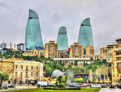 Nestled along the shores of the Caspian Sea, at the intersection of Europe and Asia, lies the splendor of Baku. As the capital city of Azerbaijan, Baku is a wonder of old and new. The city is alive with the sights, sounds, and color of culture and industry. From its fortress-walled inner city, dating back to the 12th century, to its iconic, modern marvel known as the Flame Towers, Baku is a masterpiece of beauty and technology.